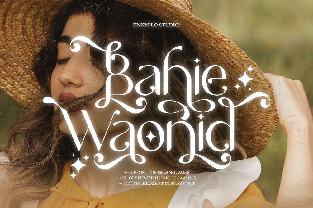 NCL BAHIE WAONID is unique modern chic sans font with unique swashes. Masterfully designed to become a true favorite, this font has the potential to bring each of your creative ideas to the highest level! It was purposely crafted to be used in large point sizes, although it doesn’t lose its magic in small point sizes. It is perfect for creative branding, event, headline, billboard, magazines, website, titles, poster, branding, t-shirt design, and logos. No matter the topic, this font will be an incredible asset to your fonts’ library, as it has the potential to elevate any creation. With this beautiful font, absolutely you can make your project stand out from the rest. See the previews above to get some inspiration on how to use them.
