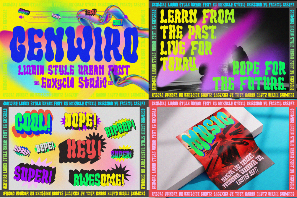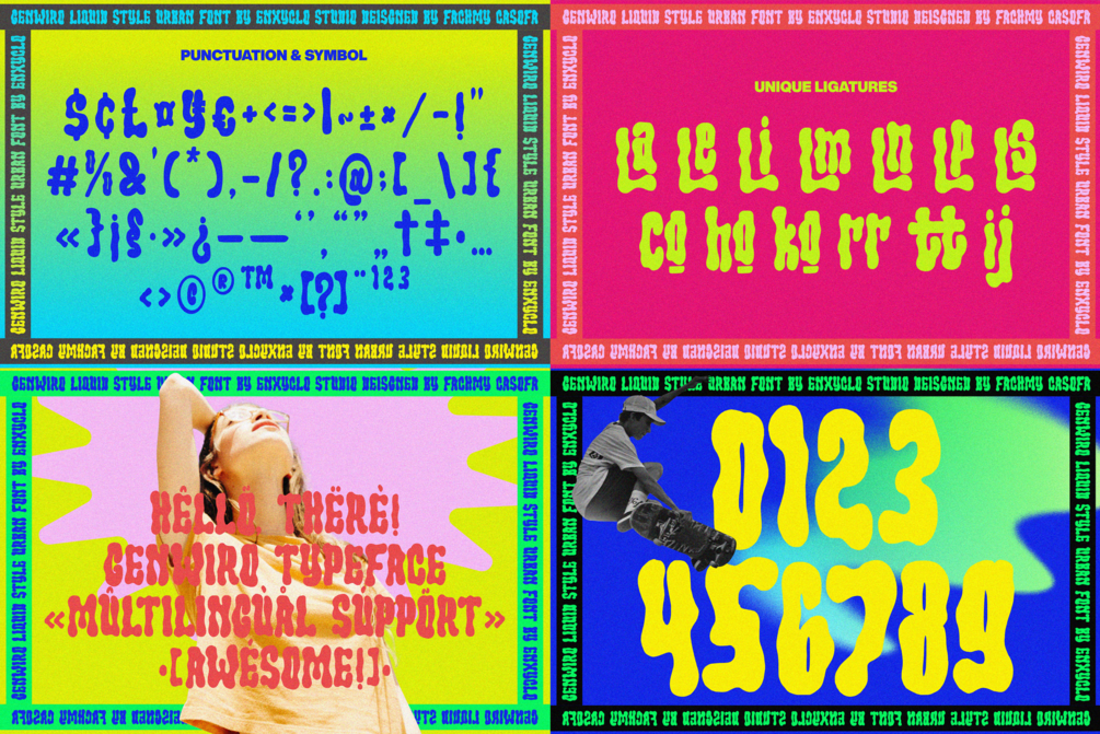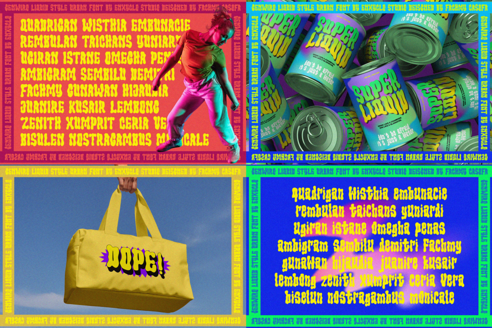Genwiro is a Liquid Expressive Bold Urban Font that flows with energy, attitude, and artistic confidence. Hand-drawn with a free-flowing motion, it captures the rhythm of modern street culture and the raw beauty of urban creativity. Each stroke moves like liquid — bold, dynamic, and full of emotion. The letters drip and wave with personality, creating a fluid texture that stands out on every surface. This makes Genwiro the perfect choice for brands that want to express bold individuality and fearless style. From streetwear logos to editorial headlines, Genwiro brings a strong visual voice that feels authentic, rebellious, and fashion-forward. Whether you’re crafting a stylish brand, a music poster, or a bold social media layout, this font delivers a dynamic flow that commands attention.