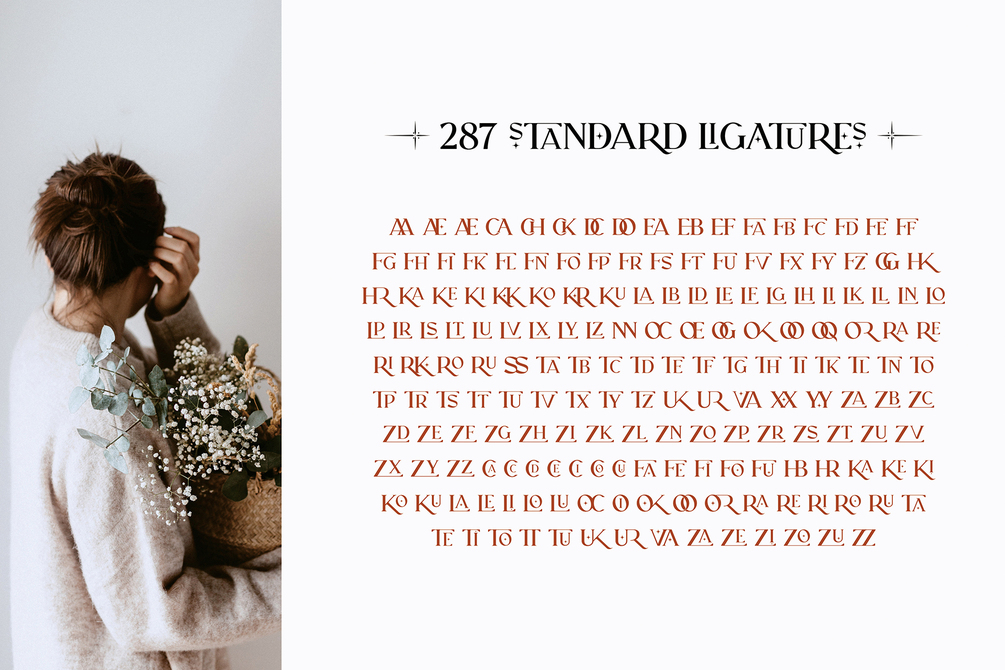 RELIGATH is a elegant and classy serif typeface with tons of ligatures. This font is both modern and nostalgic. For those of you who are needing a touch of elegant, stylish, classy, chic and modernity for your designs, this font was created for you. Yes, you! It was purposely crafted to be used in large point sizes, although it doesn’t lose its magic in small point sizes. It is perfect for headline, billboard, magazines, website, titles, poster, branding, logos, social media posts, advertisements, product packaging, product designs, label, photography, watermark, invitation, stationery, etc. It is simple, easy to read, and works awesome in header. With this beautiful font, absolutely you can make your project stand out from the rest.
